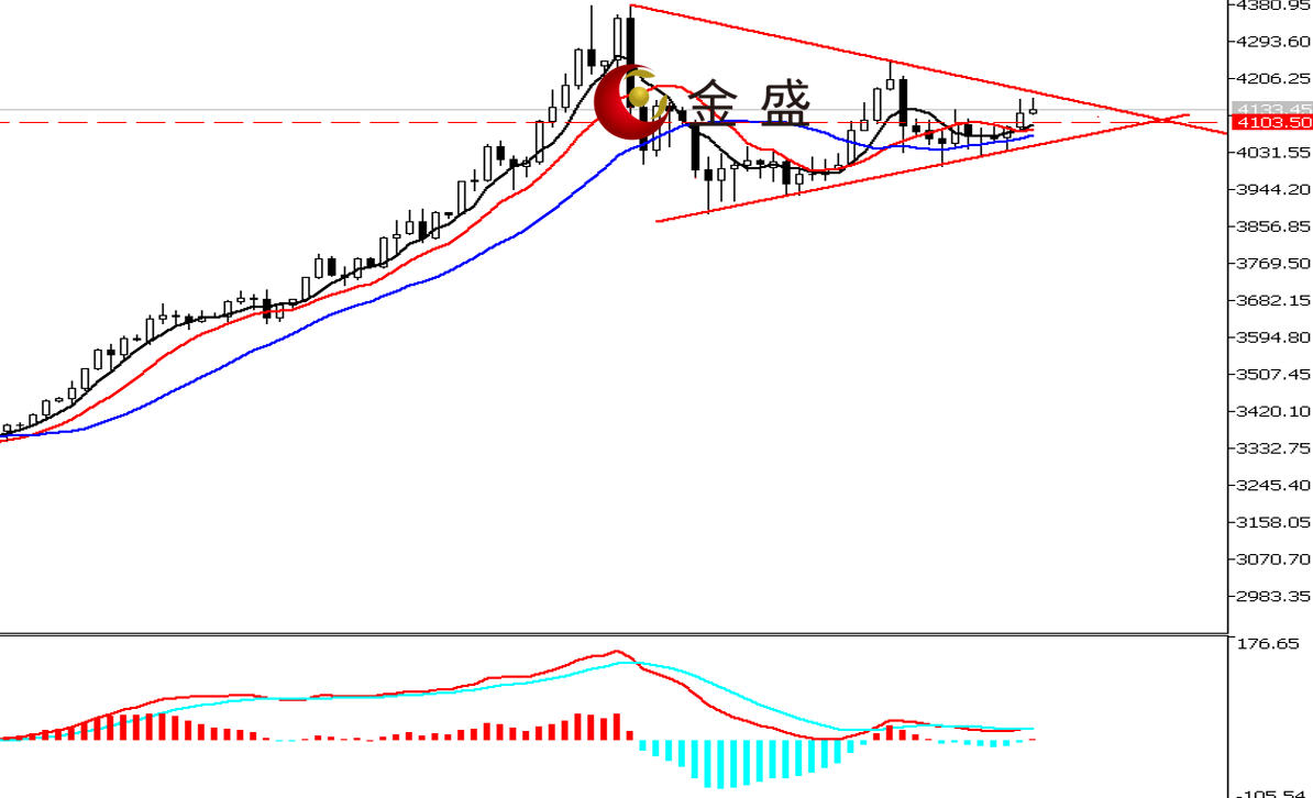 前一个交易日,早盘时段,黄金围绕4150美元一带横盘数小时后转跌,午盘创当日低点4109.51美元后止跌回升。晚盘时段,美国零售数据不及预期,黄金未涨反跌,一小时下挫逾三十美金。随着美指持续走低,金价反弹创日内高点4159.09美元,尾盘回吐全部涨幅,最终收十字星。均线系统收敛不断走平,运行在价格下方形成支撑。MACD指标快慢线零轴附近有现金叉的迹象,做空的动能衰竭。黄金技术形态构成收敛三角形,行情延续结构内震荡。周一大涨收中阳线,昨日横盘休整为主,走势对多头有利,4100美元关口形成支撑位。后市关注结构上轨4180美元一带的压力反应,操作上高抛低吸。