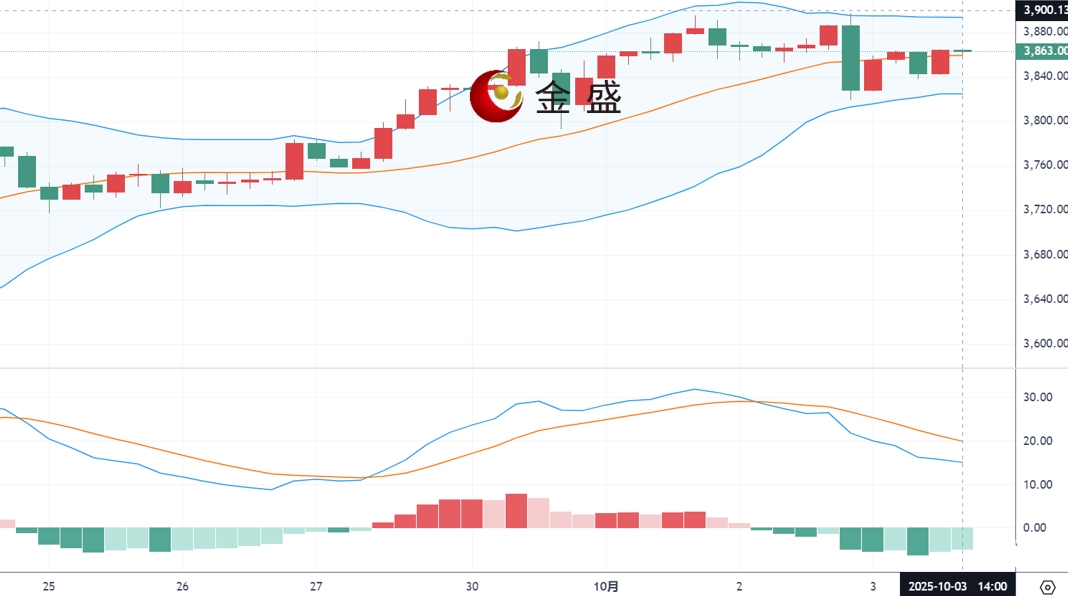 现货黄金周五(10月3日)开市于3855.73美元/盎司,盘中自日内低点3837美元/盎司附近大幅反弹,目前金价位于3862美元/盎司附近。此外,美元指数试图从一周低点反弹,成为限制黄金价格上涨的另一个因素。与此同时,市场对美联储进一步降息的预期可能限制美元的显著升值,并继续为非收益类黄金提供一定支撑。此外,地缘政治紧张局势也可能有助于限制黄金的下行空间。