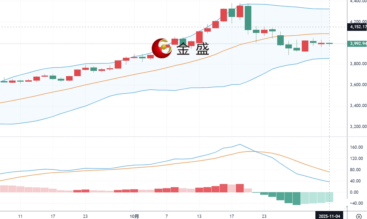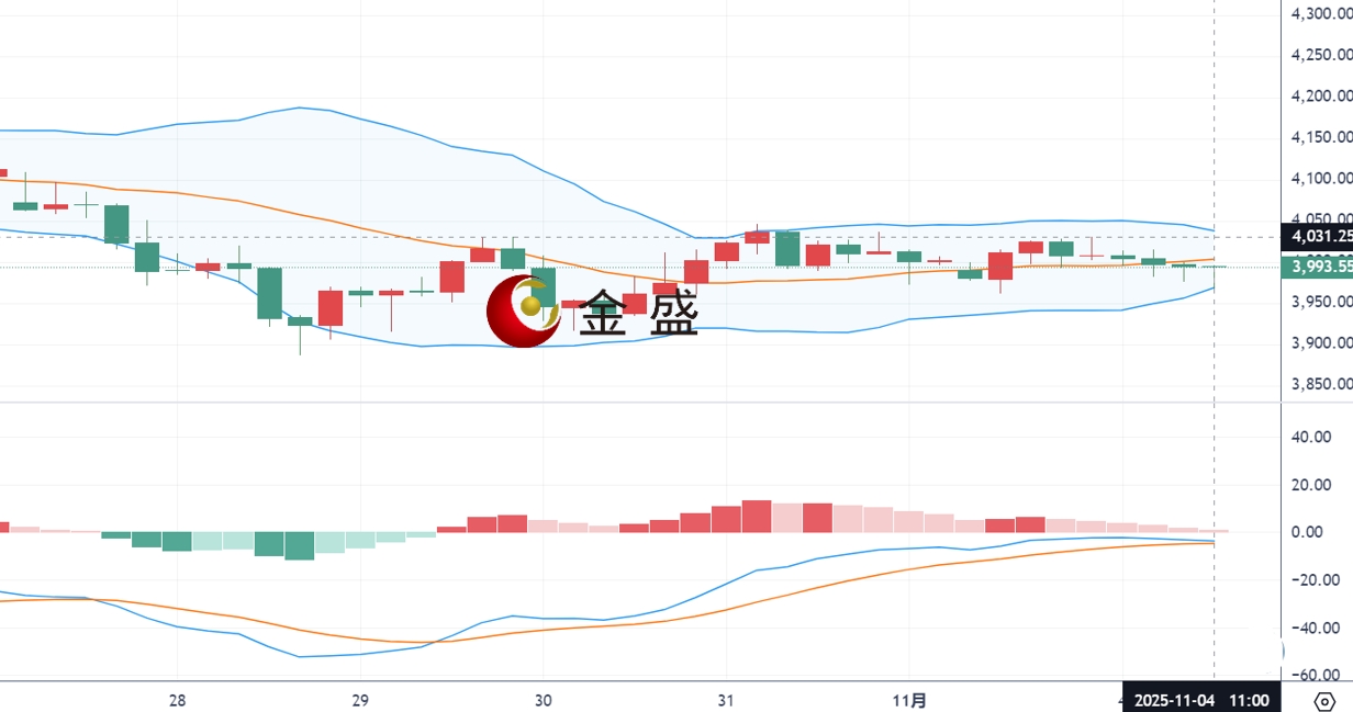 现货黄金周二(11月4日)开市于4001.23美元/盎司,盘中在4000美元心理关口下方持续承压,短期走势仍受美元强势和美联储政策预期牵制。虽然金价暂时缺乏上行动能,但持续的政府停摆风险与地缘政治不确定性为黄金提供了底部支撑。尽管金价仍能维持在前一交易日低点上方,但整体走势显示出市场多空分歧加剧,投资者在基本面信号不明朗的情况下保持谨慎。