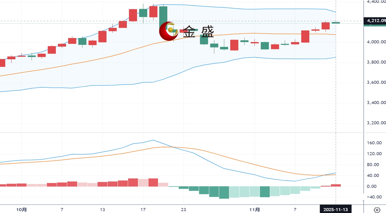 现货黄金隔日强势上涨,并一度重回4200关口上方,但未能站稳此处,最终收涨;美国政府即将结束长达42天的停摆,此举将重启关键经济数据发布,而预期中的疲软经济数据进一步强化了美联储的降息预期。现货白银大涨4%逼近历史高位。截至目前,现货黄金高位窄幅震荡,最高触及4211.49美元/盎司,最低至4179.91美元/盎司。
