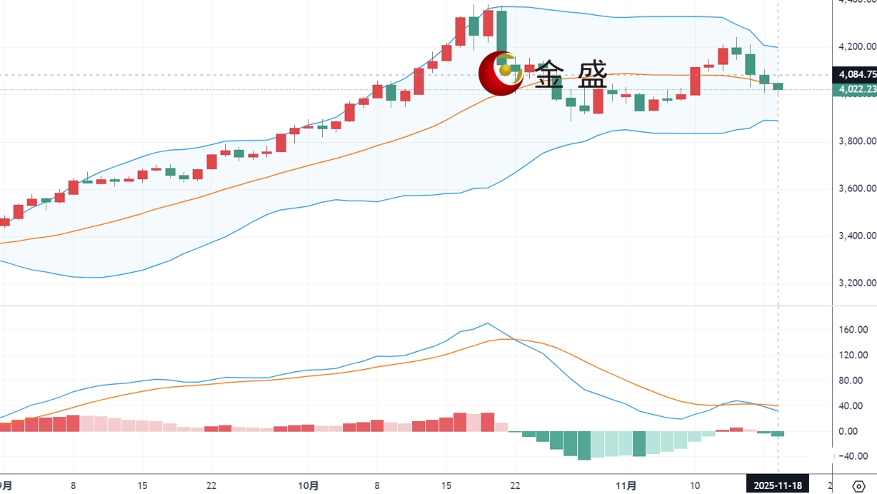 现货黄金周二(11月18日)开市于4049.07美元/盎司,盘中连续第四个交易日下跌,盘中一度跌破4000美元/盎司,而后小幅回升,由于近期缺乏新的看涨基本面消息支撑,避险金属多头显得尤为谨慎。市场关注本周将公布的美国非农数据,同时美联储官员发表的鹰派言论强化了维持高利率的市场判断。整体来看,金价短线偏弱运行,市场情绪对利率路径仍保持高度敏感。