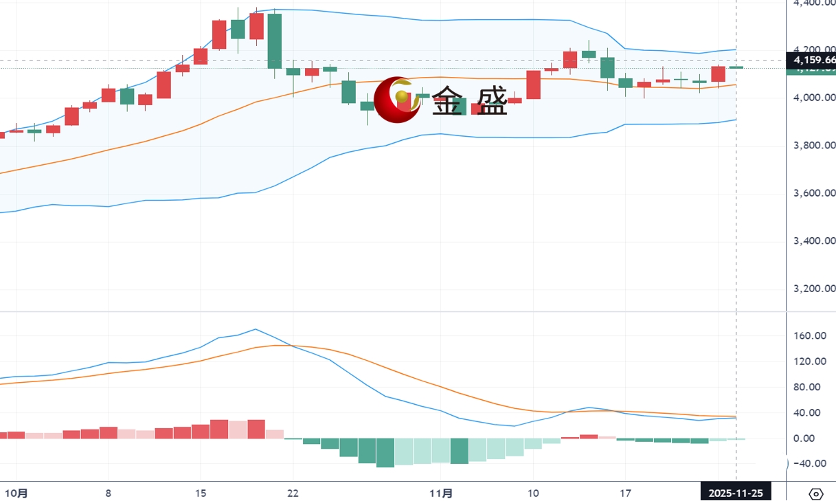 现货黄金周一(11月24日)亚市早间开盘于4070.68美元/盎司,最高4139.99美元/盎司,最低4039.89美元/盎司,收盘4134.59美元/盎司,全天波幅约100美金,当日涨幅约1.71%。