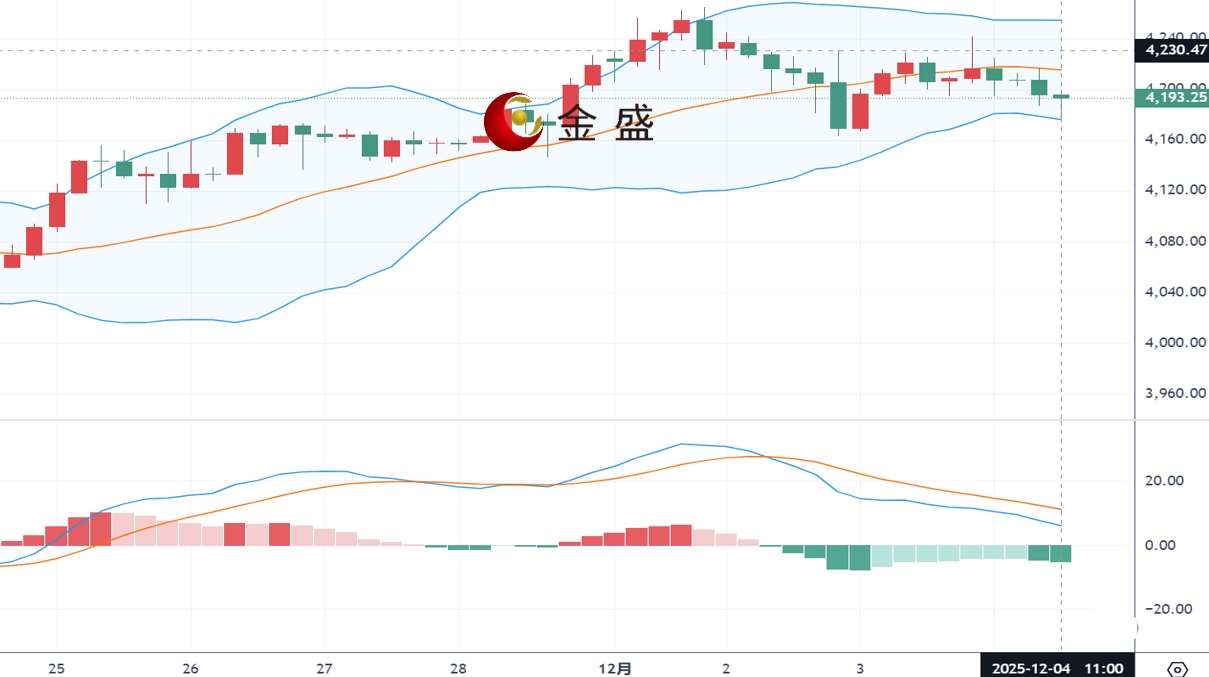现货黄金周四(12月4日)开市于4216.22美元/盎司,盘中小幅走弱,一度下跌至4175.07美元/盎司,因投资者在关键的美联储货币政策会议前态度转向谨慎,部分多头选择获利了结。市场同时期待即将发布的美国通胀数据,以获取更多关于未来利率路径的线索。市场焦点转向下周召开的美联储联邦公开市场委员会会议。