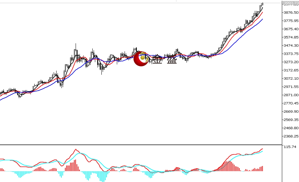 前一个交易日,早盘时段,黄金承压3980美元一带横盘整理,午后向下打破区间,价格回踩3940美元形成当日低点,随后连续阳线上行。晚盘时段,行情延续涨势,价格最高至3990.78美元,日图再收阳线。均线系统多头排列,运行在价格下方形成支撑。MACD指标快慢线零轴上方现金叉,做多的动能为主。黄金上行趋势不变,日图连续三天收阳,价格来到4000美元一带,日内关注整数关口的压力反应。操作上调整做多为主。
