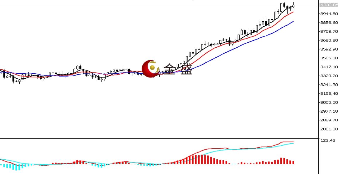前一个交易日,白盘时段,黄金承压4000美元关口震荡为主,走势形成V字型结构,盘中最低至3947美元。晚盘时段,美方威胁对华加征100%关税,市场避险情绪升温,黄金上行突破4000美元大关,尾盘创当日高点4022.56美元,日图收阳线。均线系统多头排列,运行在价格下方形成支撑。MACD指标快慢线零轴上方现金叉,做多的动能减弱。黄金上行趋势不变,周线连阳继续。上周五的阳线收复周四阴线一半以上的跌幅,高位空头信号减弱。短期市场由避险情绪主导,日内关注前高4060美元一带的真假突破。