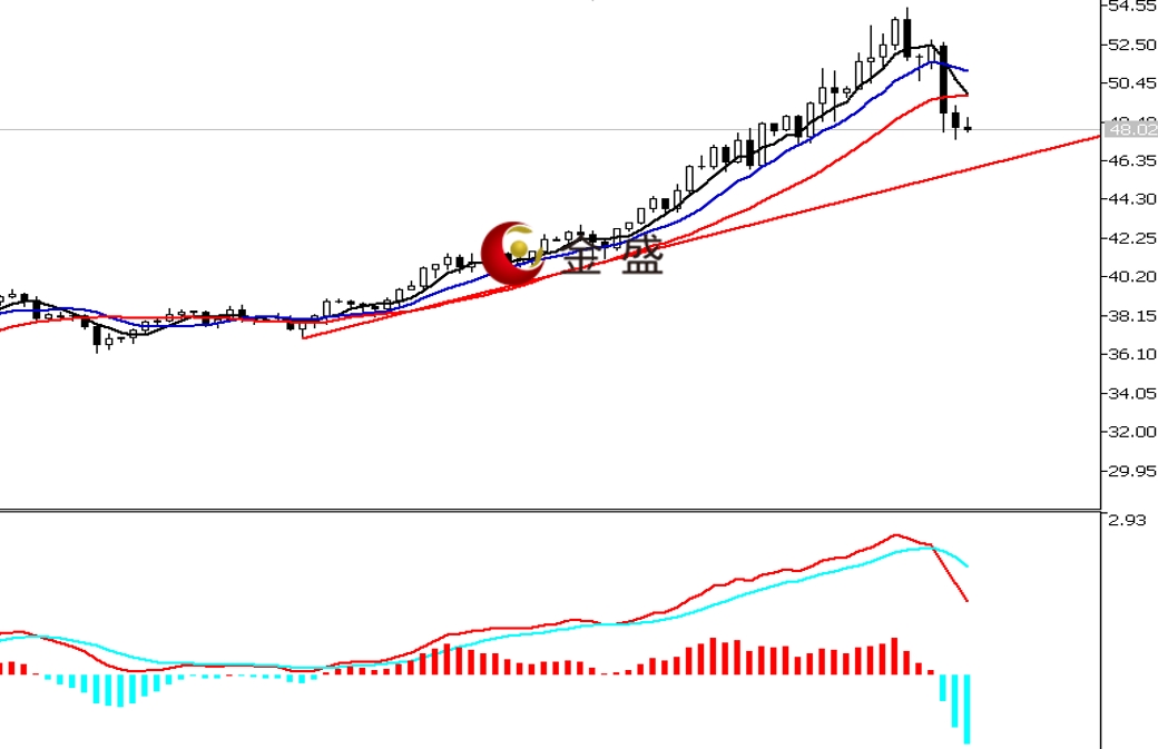前一个交易日,早盘时段,白银短暂下挫跌破48美元关口,创当日低点47.5美元,随后连阳反扑创日内高点49.27美元。欧盘震荡下行回吐大部分涨幅。晚盘时段,市场波动率下降,多头险守48美元关口横盘整理,最终收十字星。均线系统收敛向下拐头,对价格反弹形成阻碍。MACD指标快慢线零轴上方现死叉,做空的动能增强。白银高位下挫逾10%,确认进入调整阶段。昨日震荡收十字星,短期关注昨日低点能否止跌企稳。如再度跌破,则偏向回踩图示的趋势线一带。
