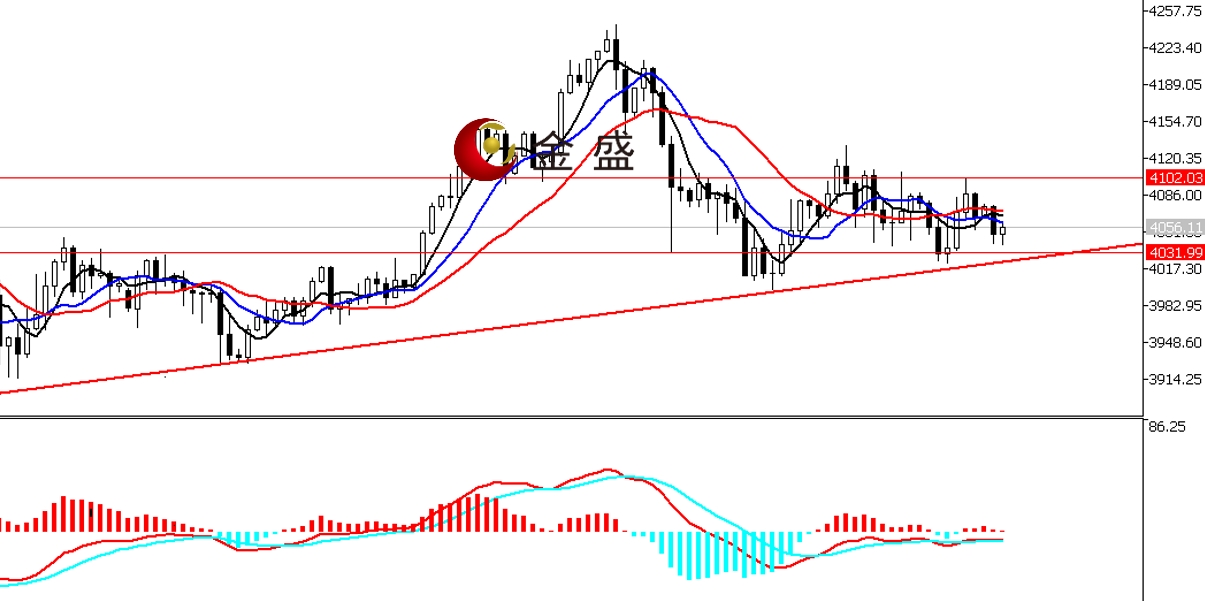 现货黄金周一(11月24日)开市于4066.01美元/盎司。亚欧盘时段,美指坚守百元关口,延续区间横盘震荡。黄金早盘一小时下挫三十美金,午后横盘休整,多头回吐上周五大部分涨幅。截止目前,金价最高4077.47美元/盎司,最低4040.09美元/盎司。黄金上周承压4100美元一带震荡为主,多空形成4030—4100的盘整区间。下轨支撑正好与近一个月的反弹趋势线共振,短期关注区间如何变盘,操作上未打破结构前,围绕上下轨高抛低吸。